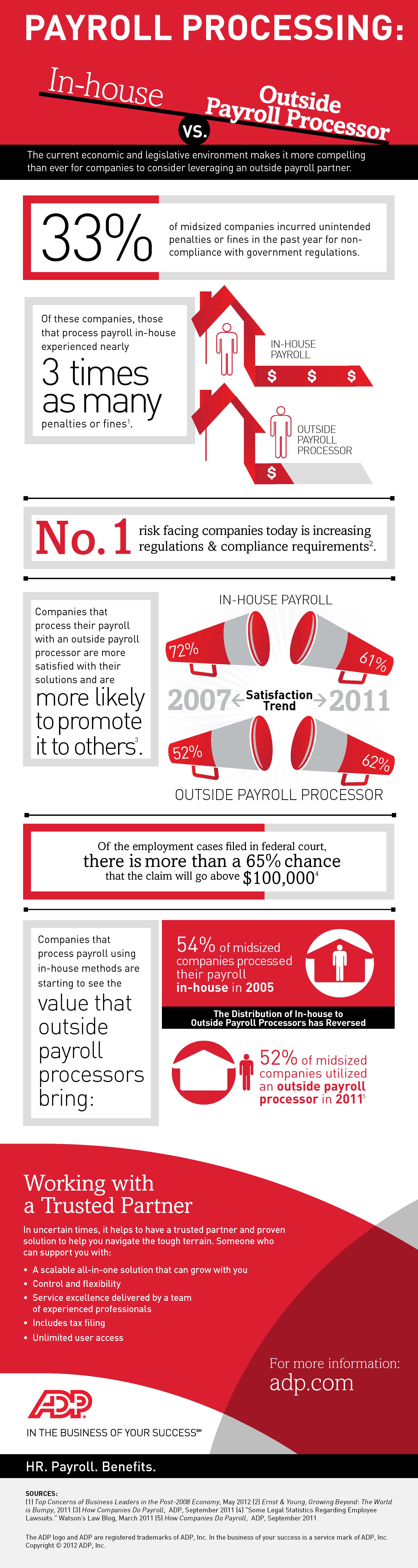 Of these companies, those that process payroll in-house experienced nearly 3 How Companies Do Payroll, ADP, September 2011 The ADP logo and ADP are registered than ever for companies to consider leveraging an outside payroll partner. PAYROLL PROCESSING: In-house VS. % 2007 Satisfaction ... Visit Document